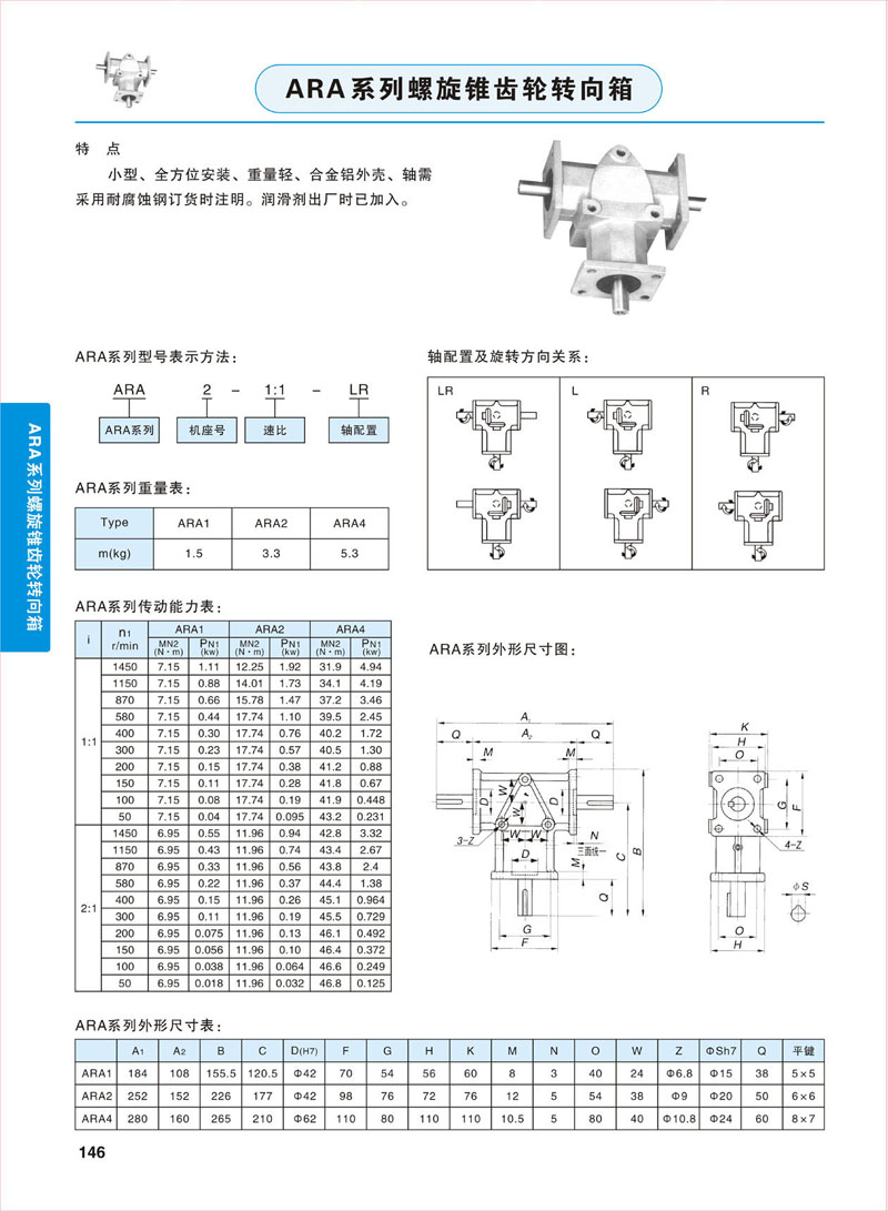 ARA系列轉(zhuǎn)向箱型號(hào)有: ARA0、ARA1、ARA2、ARA4;