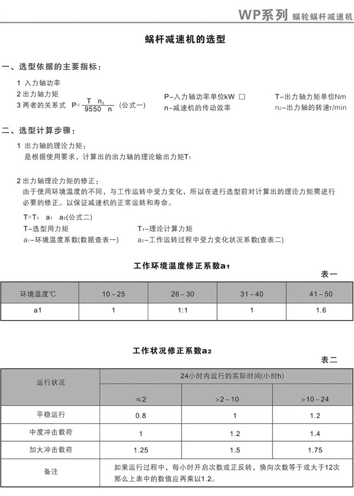下一篇:WP蝸輪蝸桿減速機(jī)的入力軸功率及出力軸力矩表