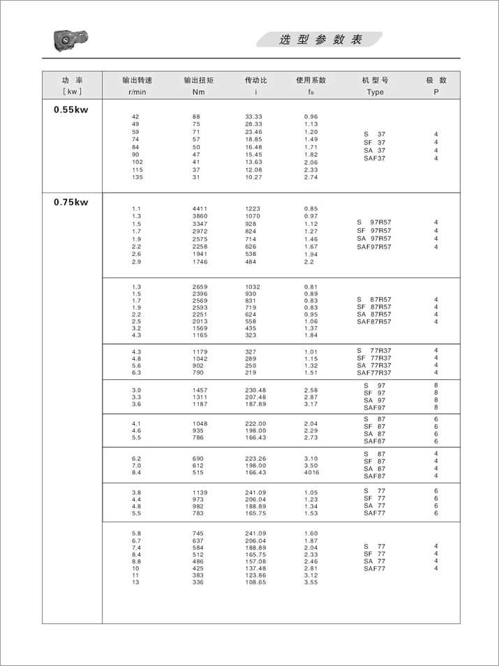 上一篇:S系列斜齒輪蝸桿減速機(jī)選型參數(shù)表0.75KW