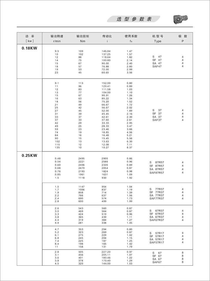 上一篇:S系列斜齒輪蝸桿減速機(jī)選型參數(shù)表0.37KW