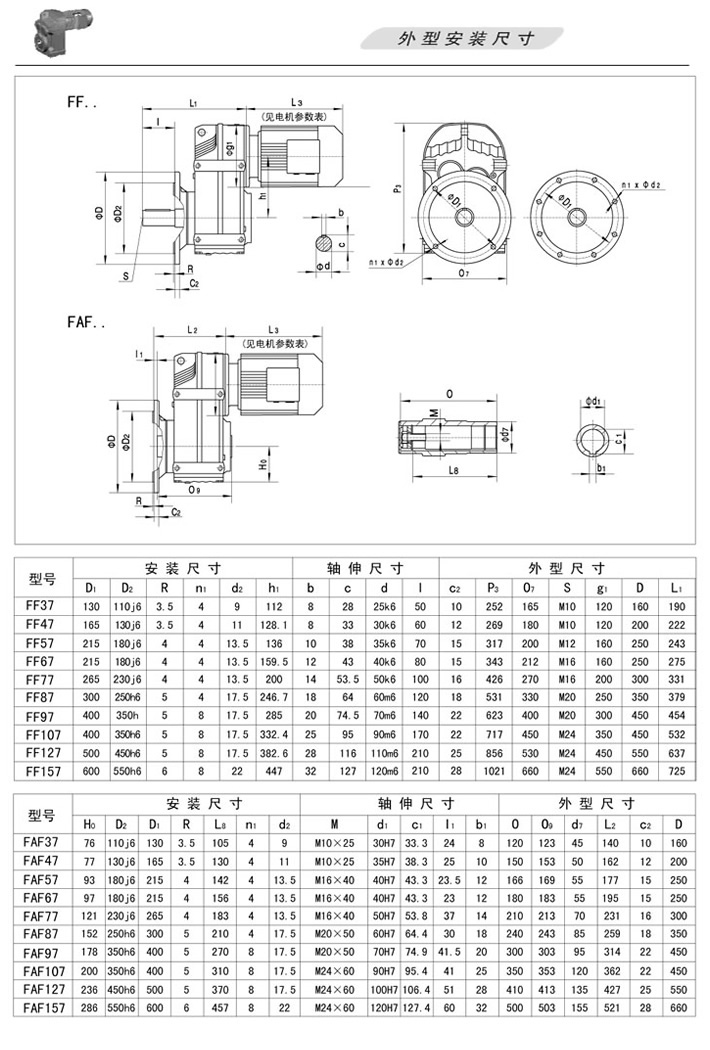 FF平行軸斜齒輪減速機…(軸伸式法蘭安裝)、FAF…(軸裝式法蘭安裝)外形安裝尺寸