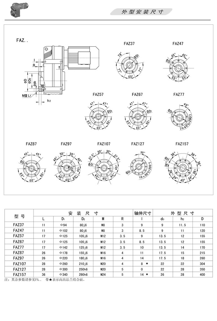 上一篇:FF平行軸斜齒輪減速機…(軸伸式法蘭安裝)、FAF…(軸裝式法蘭安裝)外形安裝尺寸