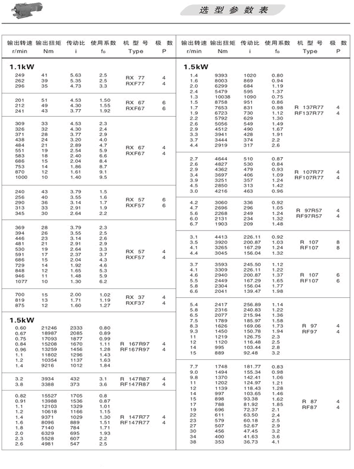 R斜齒輪減速機選型參數(shù)表1.5KW